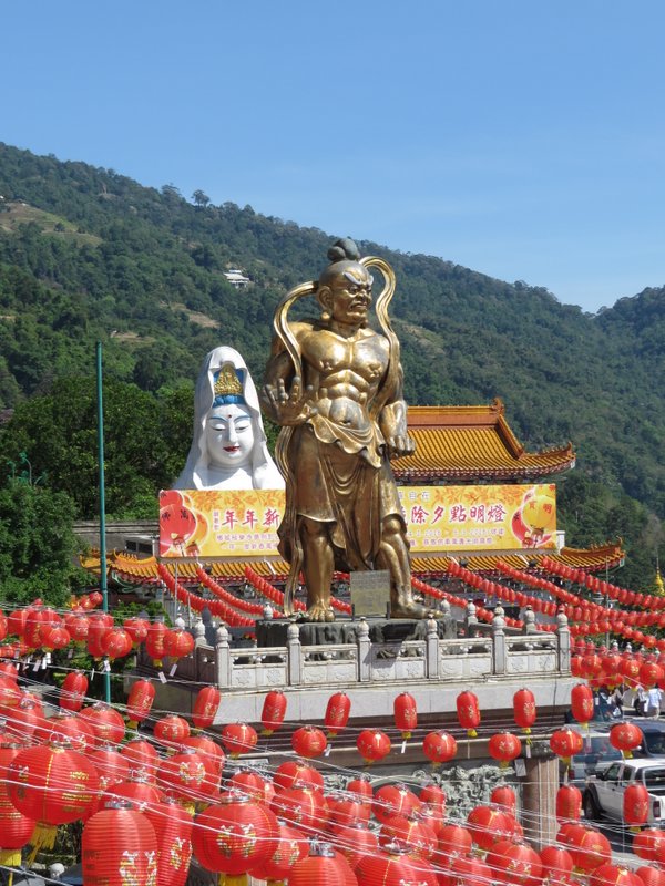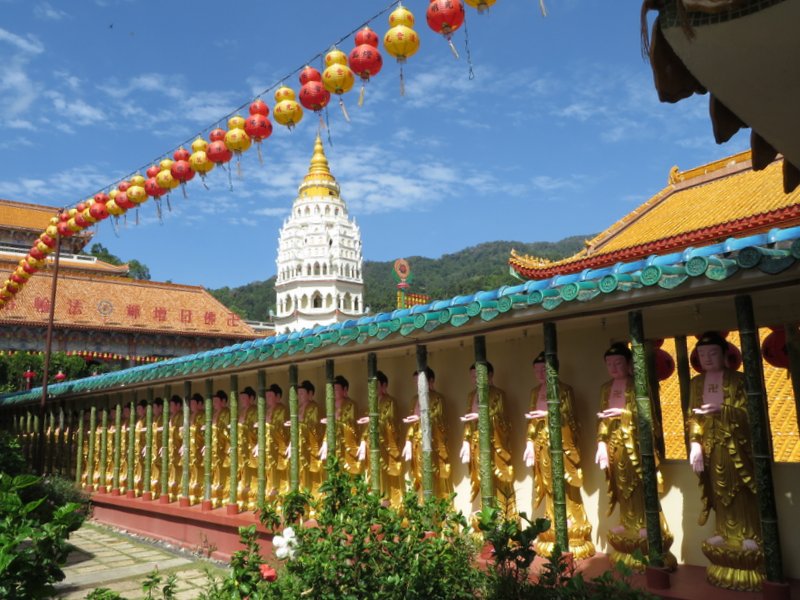 Once you get into the temple complex itself, it is very beautiful. The pagoda looks stunning against the deep blue sky and the statues are intricately created. There are hundreds of Buddha statues and amazing carvings and art. For a few ringgit you can get crammed into a funicular train that takes you up to the large statue of Guanyin, the Goddess of Mercy. At almost 100 feet high it’s an impressive sight. They are currently constructing a large pavilion over the statue presumable to protect it. It’s actually quite fascinating to see something as it is being constructed. Similar to how I felt visiting the Sagrada Familia in Barcelona but on a smaller scale.