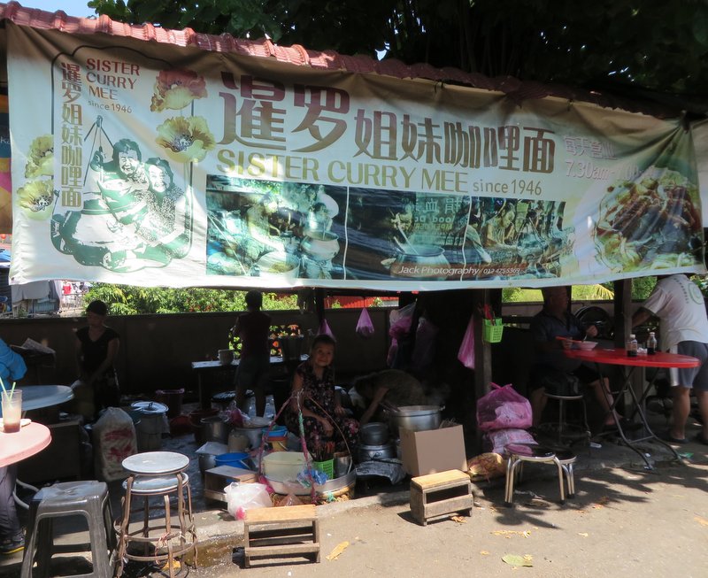 The temple is definitely worth visiting and is one of my favorite sights on the island. After trekking back down the stairs we decided to take part in another piece of history. We had heard about the Sisters Curry Mee from our favorite Malaysia cooking You Tube channel Nyonya Cooking. She visited here and we knew we had to follow in her footsteps.