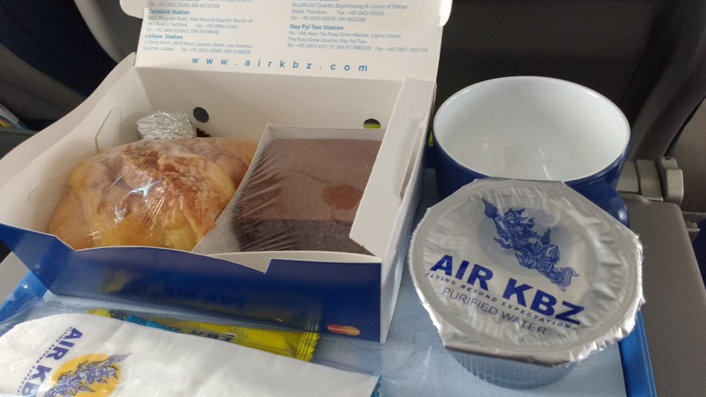 Transport: Bagan to Yangon: We decided to fly from Bagan to Yangon. Again the hotel staff sorted everything out for us. We paid US$93 each for an Air KBZ flight. We could have booked online but it was about $20 more, and having the staff sort it out was very convenient. Someone came over to the hotel with the tickets within an hour of us confirming the reservation to take our cash in exchange for the tickets! Now that’s old fashioned service. The flight was uneventful, the planes seemed modern and they even fed us during the short flight!
