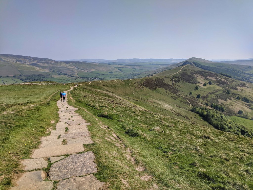 After Bakewell we decided to head to the High Peak area of the Peak District. Basing ourselves at the Castleton Caravan and Motorohome club site between the charming villages of Castleton and Hope, we did some more serious walking. Just like in Bakewell we were blessed with beautiful weather and took the opportunity for a Monday morning walk up the beautiful Mam Tor. It was stunning day and the lush green scenery had me singing my Sunday School hymns as we walked. Iain is well used to my frequent outbursts of Jerusalem as we stroll over England’s green and pleasant land!