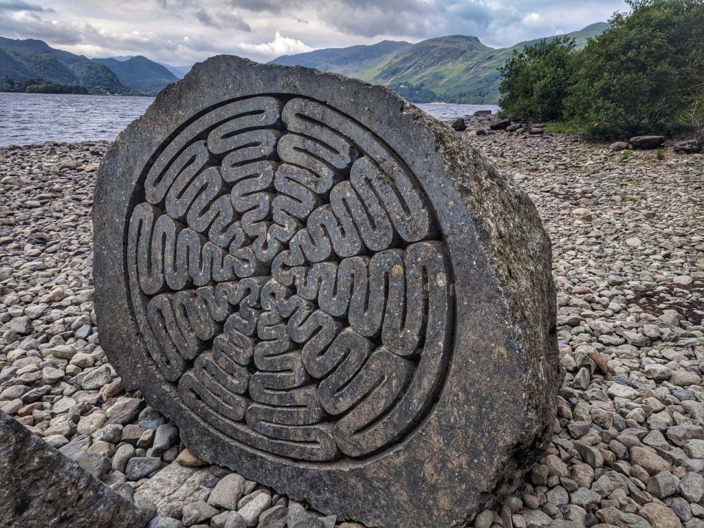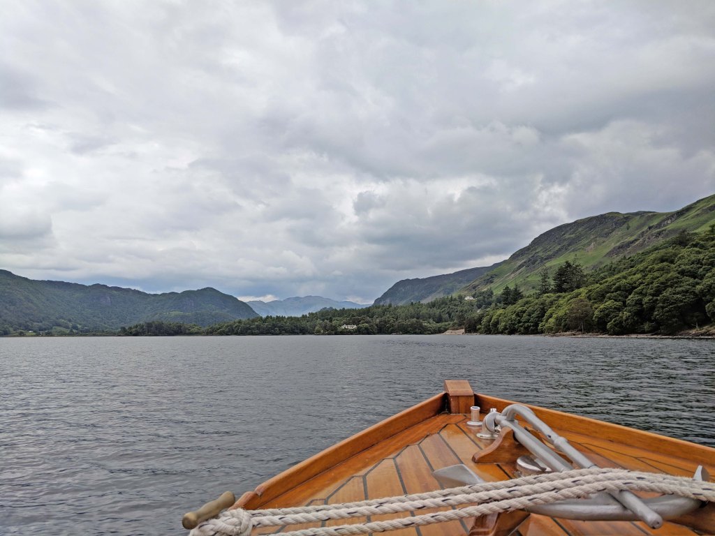 Our next stop was a more traditional Cumbrian destination. The town of Keswick is your typical Lake District town, full of hikers, fish & chip shops and purveyors of marvelous sausages. We stayed just a few minutes from the center of the town in the Derwent Water Caravan Club site; a perfect campsite as we had family staying in a central Keswick hotel. The town lies on the scenic Derwentwater lake. On our first day we took a boat ride around the lake as clouds loomed overhead but never released the rain for which the Lake District is famous. The forecast predicted a second dry day so we took on the challenge of a ten mile hike on the footpath around the lake after breakfast the next morning. It was a sure fire way to feel justified in consuming our fish & chip suppers that night.