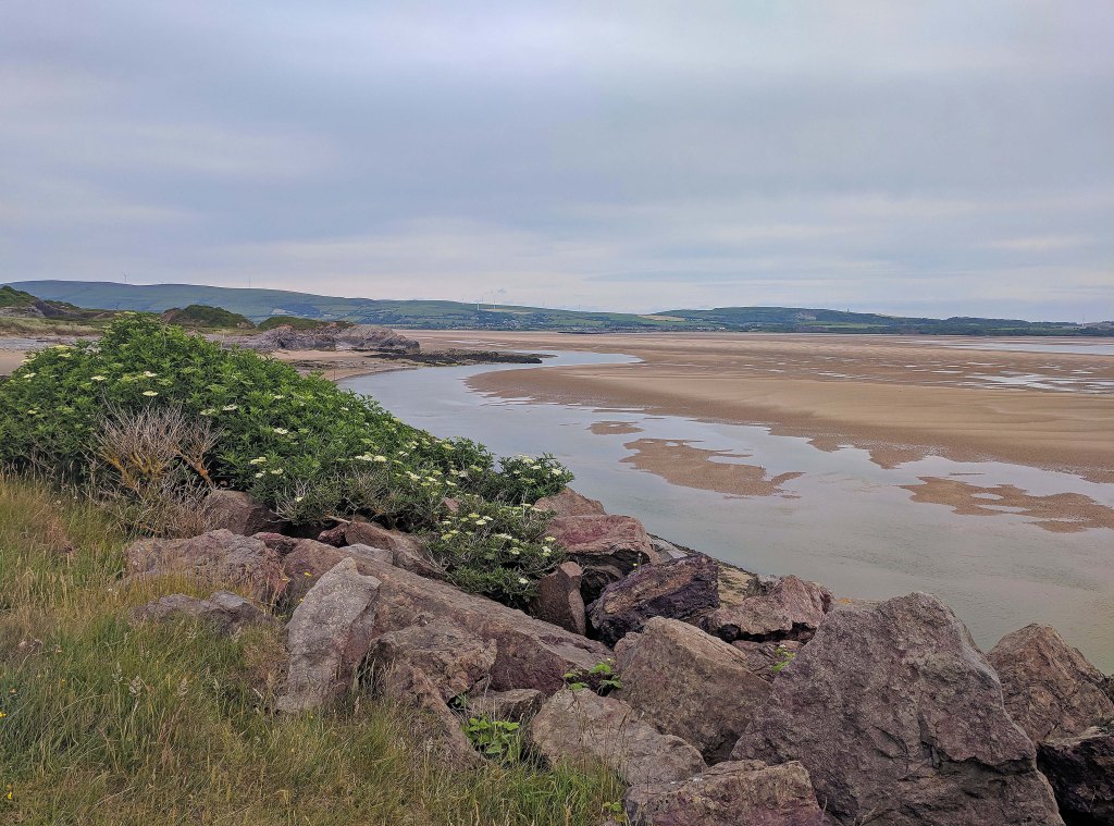 For our first stop we decided to take a look at the Cumbrian coast. We chose a cute little campsite in Haverigg, near the remote town of Millom. I am not sure I can call this coastline scenic. It is striking in an expansive, austere kind of way. The town is at the Duddon Estuary so you don’t actually see the Irish Sea. In fact we saw very little water at all, even when the tide was in. But we got the opportunity to walk along the other-worldly banks of the estuary. These banks stretch for miles and miles, with scant evidence that sometimes this place is under water. The towns of Haverigg and Millom were a little run down. They may have seen better days but, then again, maybe they have never seen them. Still we were glad to have the shoreline to wander; the weather was glorious and being late June, the nightime was fleeting.