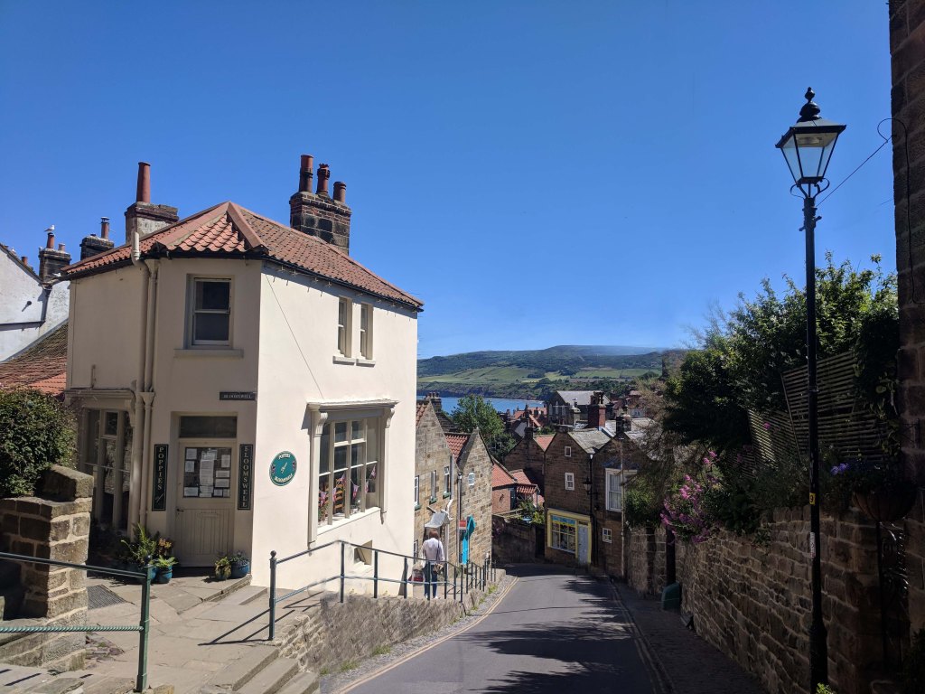 The path had very little shade and we were more than a little exhausted when we reach Robin Hood’s Bay and came to realize that this is a very hilly town. After rewarding ourselves with an ice cream we decided to abandon our plan to walk back again opting for a bus ride instead.