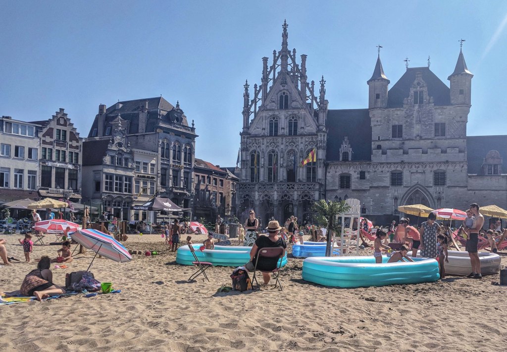 Back in the Flemish part of Belgium, our next stop was the very pretty city of Mechelen. We took the train from our campsite and found ourselves in the bustling center of the city. St Rumbold’s Cathedral with its imposing tower overlooks the city and its beautiful pristine architecture. As part of a summer festival a beach had been constructed in the main historic square. It was quite surreal to see kids in swimsuits running around while Gothic statues looked on.