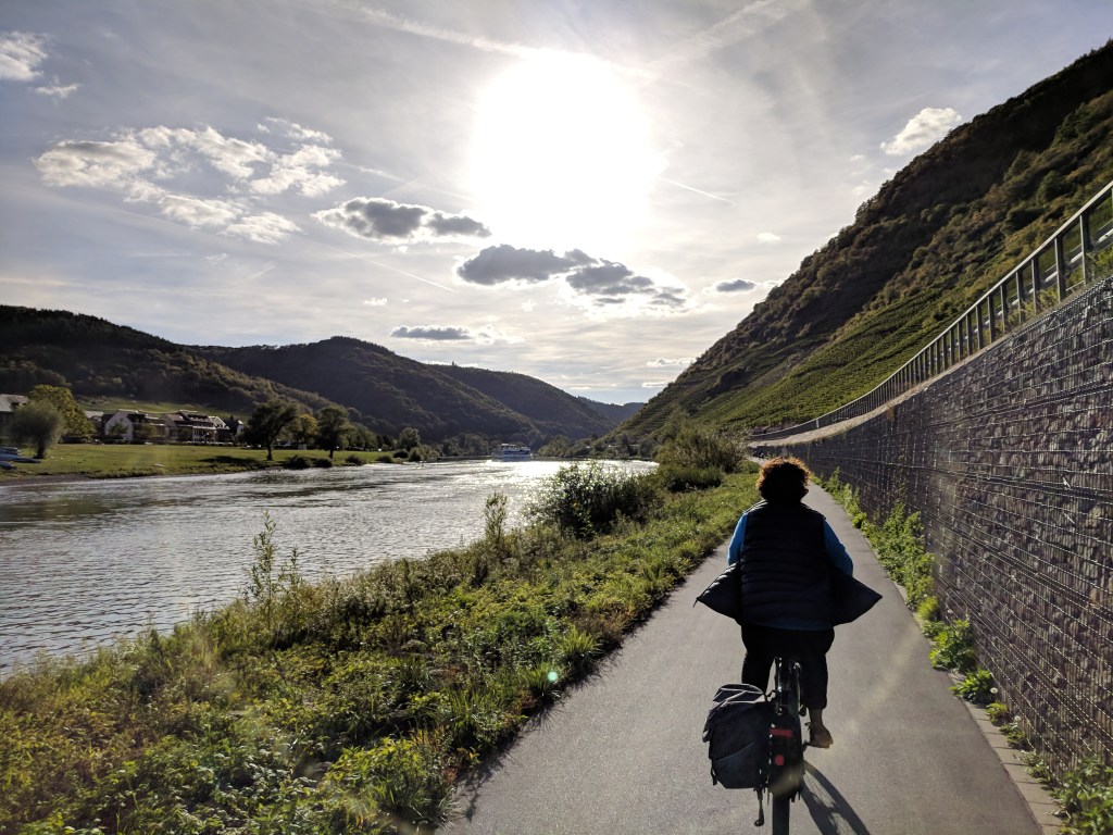 We found what worked best for us was to drive 10 to 15 miles down the road each day or two and then use our bikes to explore the area. The cycling along the river is sublime. With dedicated cycle paths along each side of the river we found at many stops we could cycle to a town for lunch or a glass of wine and then cross over one of the frequent bridges over the Moselle and ride back along the other bank.