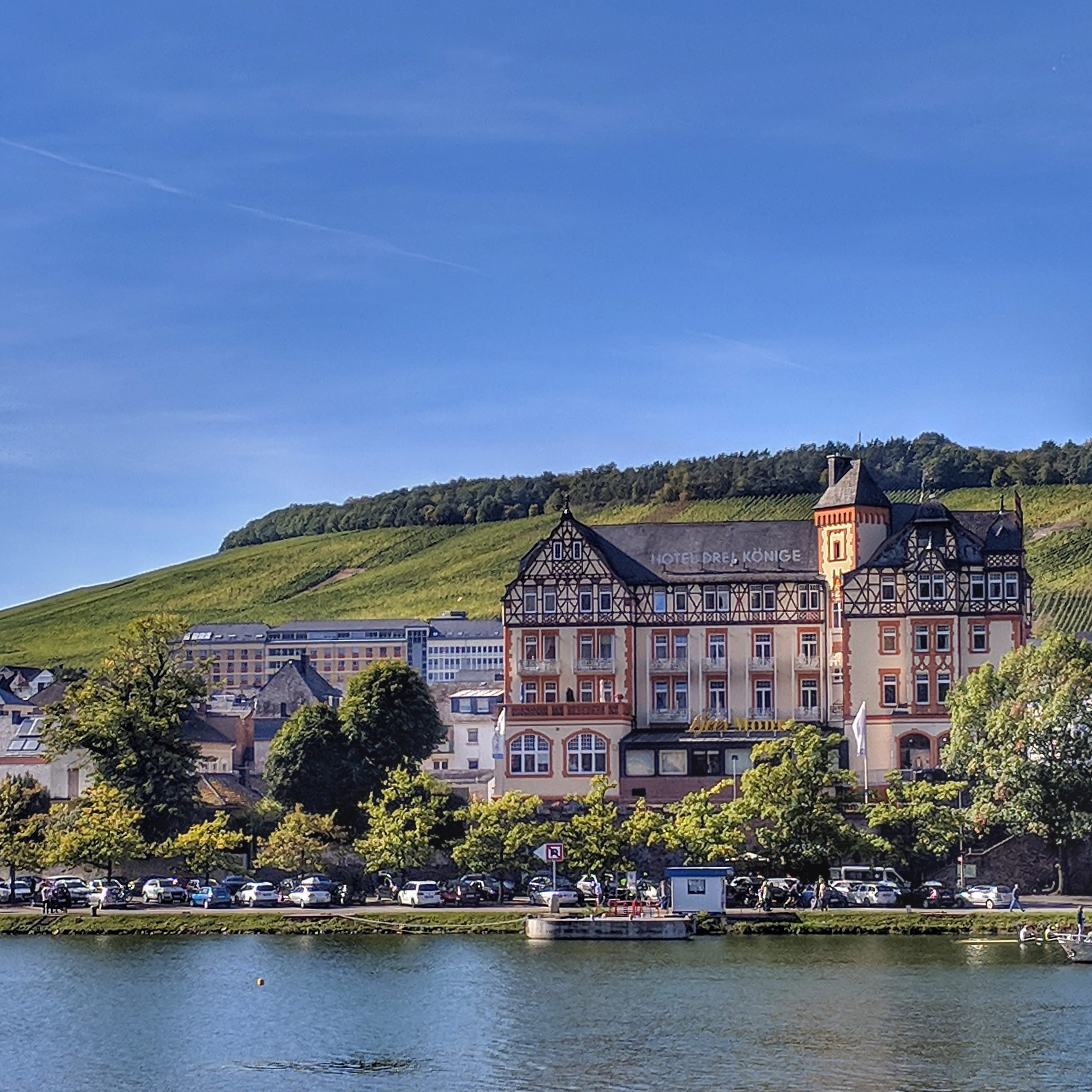 The towns along the way are quite simply picture postcard perfect. They are immaculately kept, with an abundance of half-timbered houses and town halls that look like they were lifted straight from Disneyland. As if that wasn’t enough, some of the towns have castles high above them and absolutely everywhere you are surrounded by vineyards. There seems to be no spot left that is not turned over to producing grapes, in fact the Moselle valley boasts the steepest vineyards in the world. It’s hard to imagine how they are harvested, maybe by abseiling!