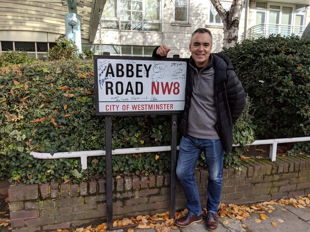 We had not spent a lot of time in the South Bank area of London before and we started of our second day in London, Iain’s birthday, with a trip to Borough Market. This is a fantastic gourmet food market with some amazing treats and eats. We had a tasty breakfast and bought some pies to take home for our dinner. Iain’s request for his birthday was to visit one London landmark that neither of us had visited before, Abbey Road Studios. We rode the tube to St John’s Wood and took a short walk to join several other tourists walking across the famed zebra crossing and peered through the railings at the studio. Iain is a big Beatles fan and this was a real treat for him.
