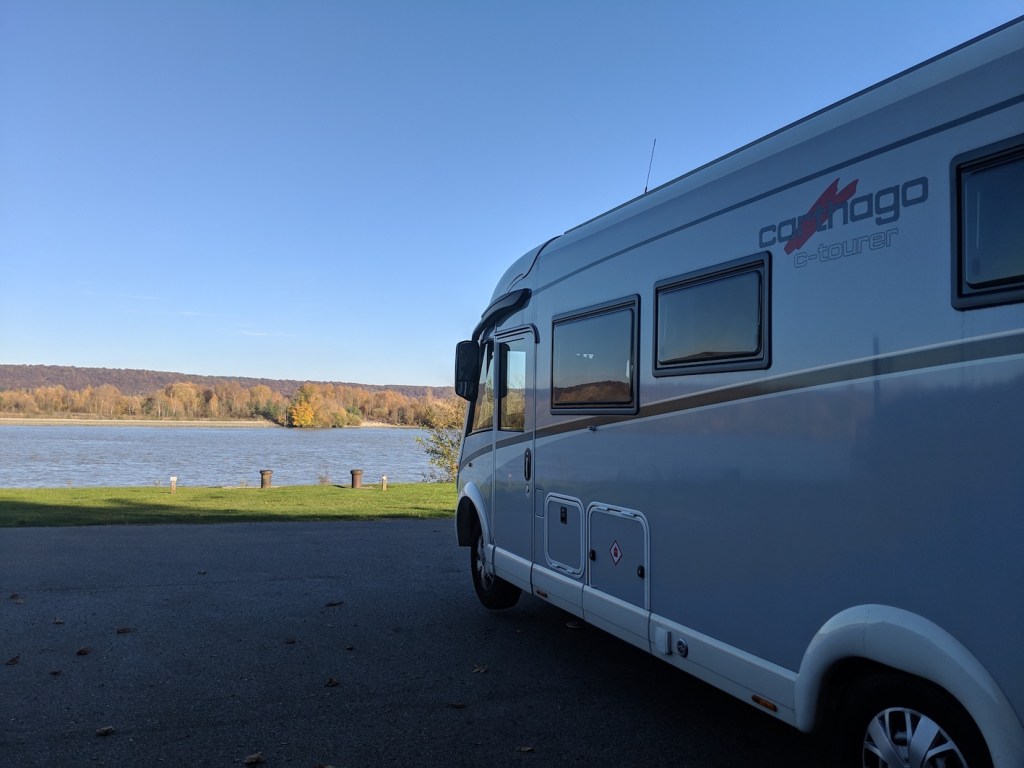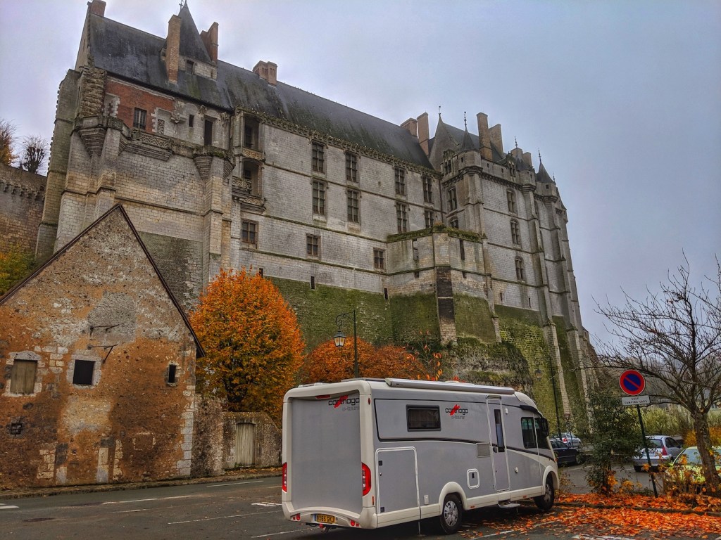 It started off well enough, the weather was bright and pleasantly warm. We stayed for a lovely autumnal evening on the banks of the Seine watching cargo ships pass by in a small village called La Mailleraye-sur-Seine. But then the fog started to roll in and the weather turned decidedly chilly so we decided to move along as quickly as possible. Visibility was poor so there was no lovely countryside to view and the driving was a little more tiring than it would have been on a less gloomy day. We started to realize that we were definitely too far north for November. We vowed not to let that happen again.