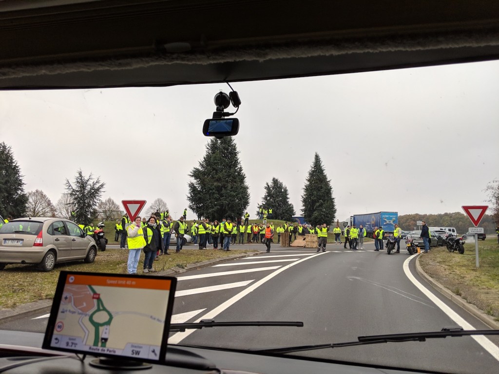 The aires in French towns are super convenient places to stay, often free with services. We welcomed the respite from driving, but most of the towns were kind of sleepy and we were keen to get south to better weather. Then we hit another roadblock… a literal roadblock. The french protesters, or Gilet Jaunes, as they have been dubbed were out in force protesting at the increase in fuel prices. As we wanted to press on south, we elected to head out on the day that they had decided to act. For the most part it wasn’t too bad; it added an hour to our journey, the protesters were good-natured and as long as you displayed your yellow vest on your dash in solidarity they waved you through.