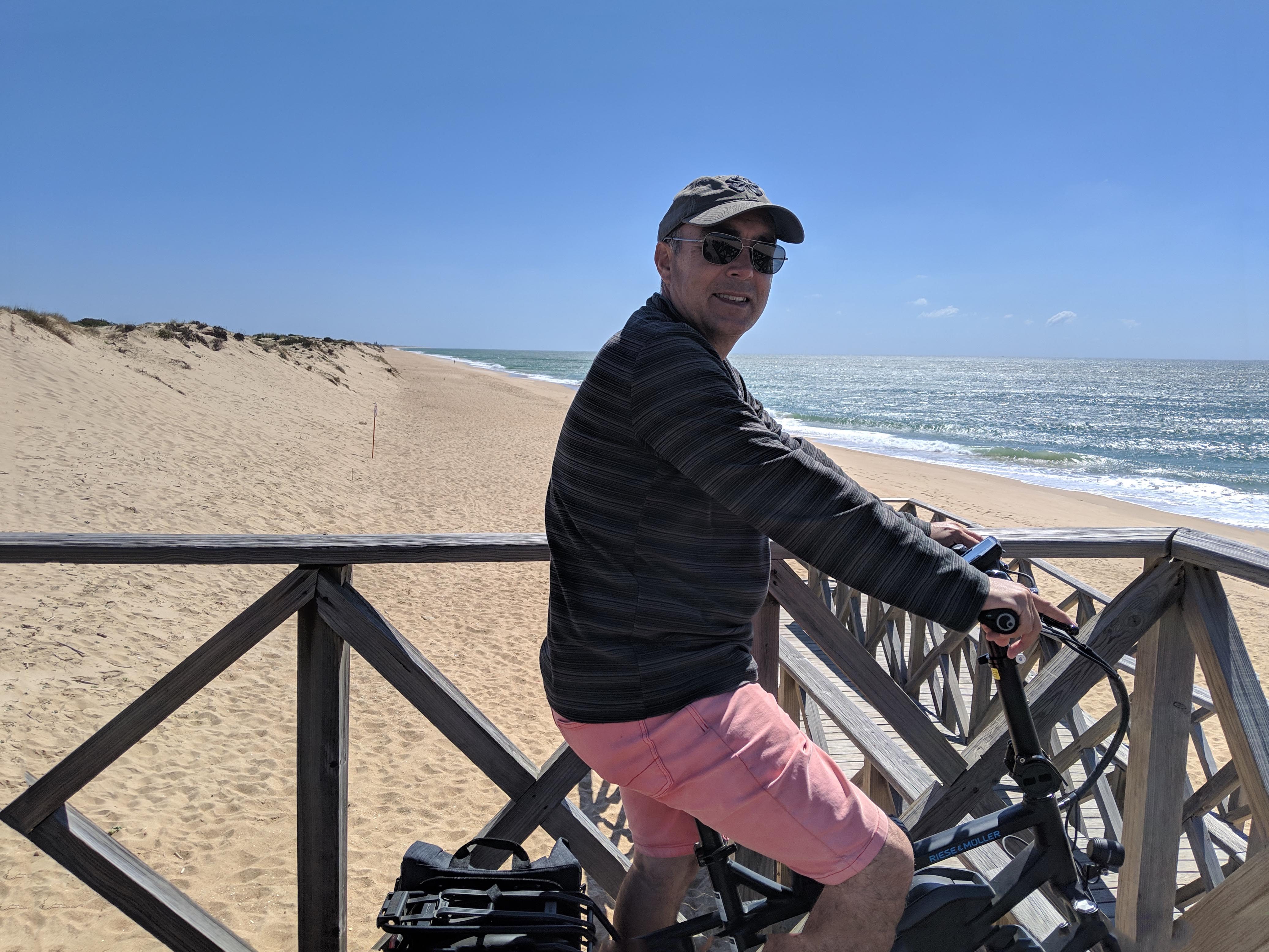 Our first stop was the cute little fishing town of Tavira. We had heard that it was one of the prettier towns on the Algarve, and now in retrospect we agree. Although we just felt meh about it at the time, after seeing how commercialized a lot of the rest of the coast is we can understand the charm. We parked up for free near the mercado just a short walk into the town, which has a pleasant centro area with some pretty buildings and a few atmospheric riverside bars. We enjoyed some great cycling from here along to Tavira Island which has miles and miles of sandy beaches with not a soul on them.