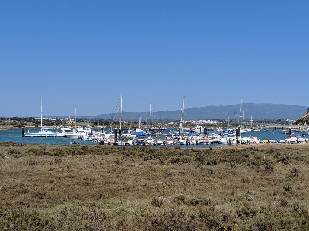 After Faro, we stopped over at a wild camping spot near Villamoura. Again a lovely coastline, not quite as deserted as east of Faro, but still nothing to complain about with sandy beaches stretching in every direction. Lots of lovely bluff walking around here too, we strolled along to Villamoura. An upmarket tourist spot, with all the sports bars and restaurants that seem to be a feature along this stretch of coast.