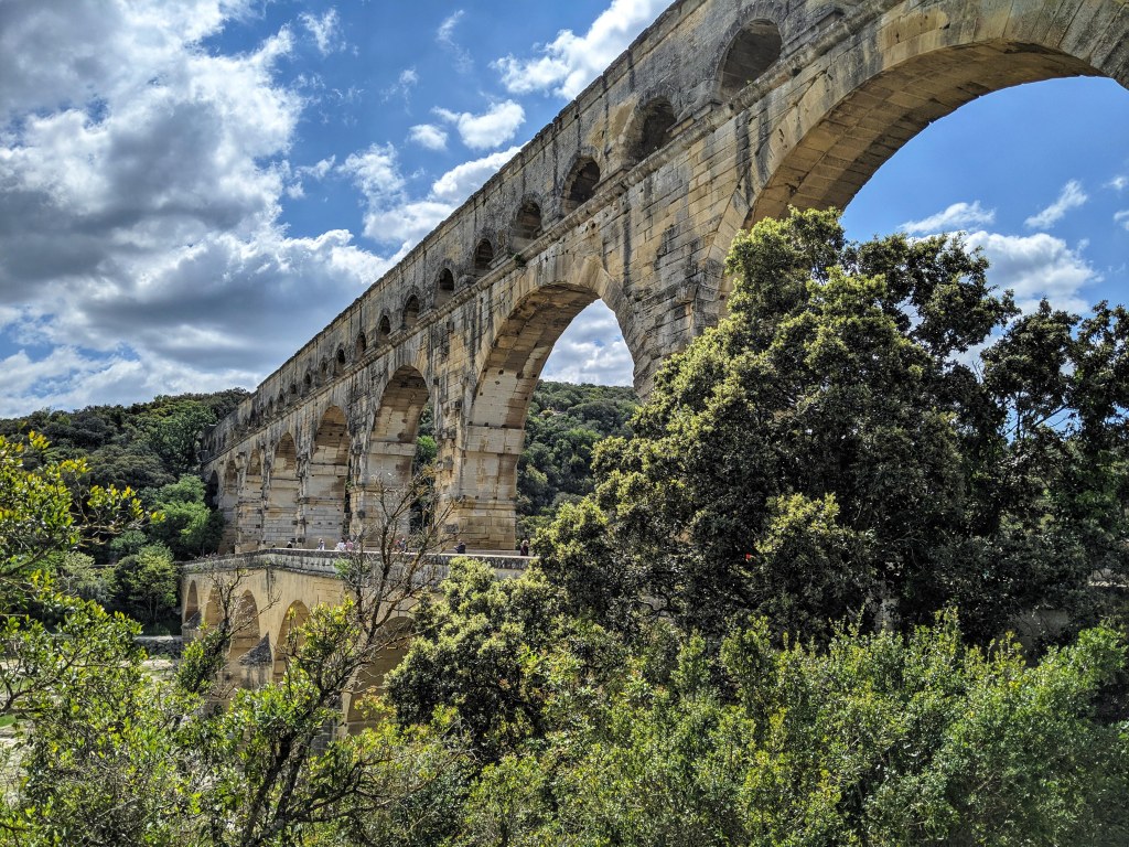 The next day we decided to head west from Avignon to visit one of France’s most visited tourist attractions – The Pont du Gard. This roman aqueduct bridge was built in the first century A.D. and is stunning to see and fascinating to read about. The accompanying exhibition is really something and leaves you completely amazed at the feat of engineering that was achieved two millennia ago to carry water from its source near Uzès over 50km to the people of Nîmes.