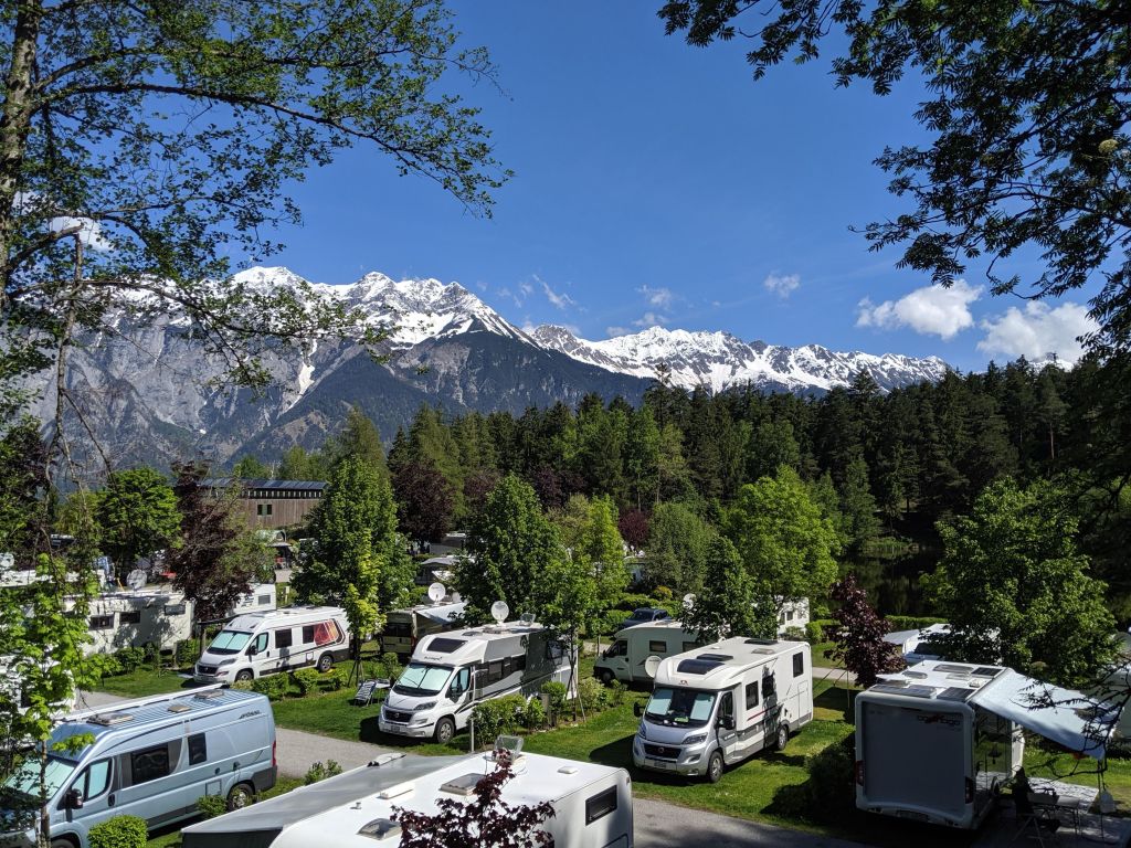 55. Camping Natterer See, Natters, Nr Innsbruck. Impeccable campsite, with a beautiful setting surrounded by the Alps. A lovely lakeside bar and restaurant, and some of the best sanitary facilities ever. 28€ a night with ACSI Card. GPS: 47.2368, 11.34001