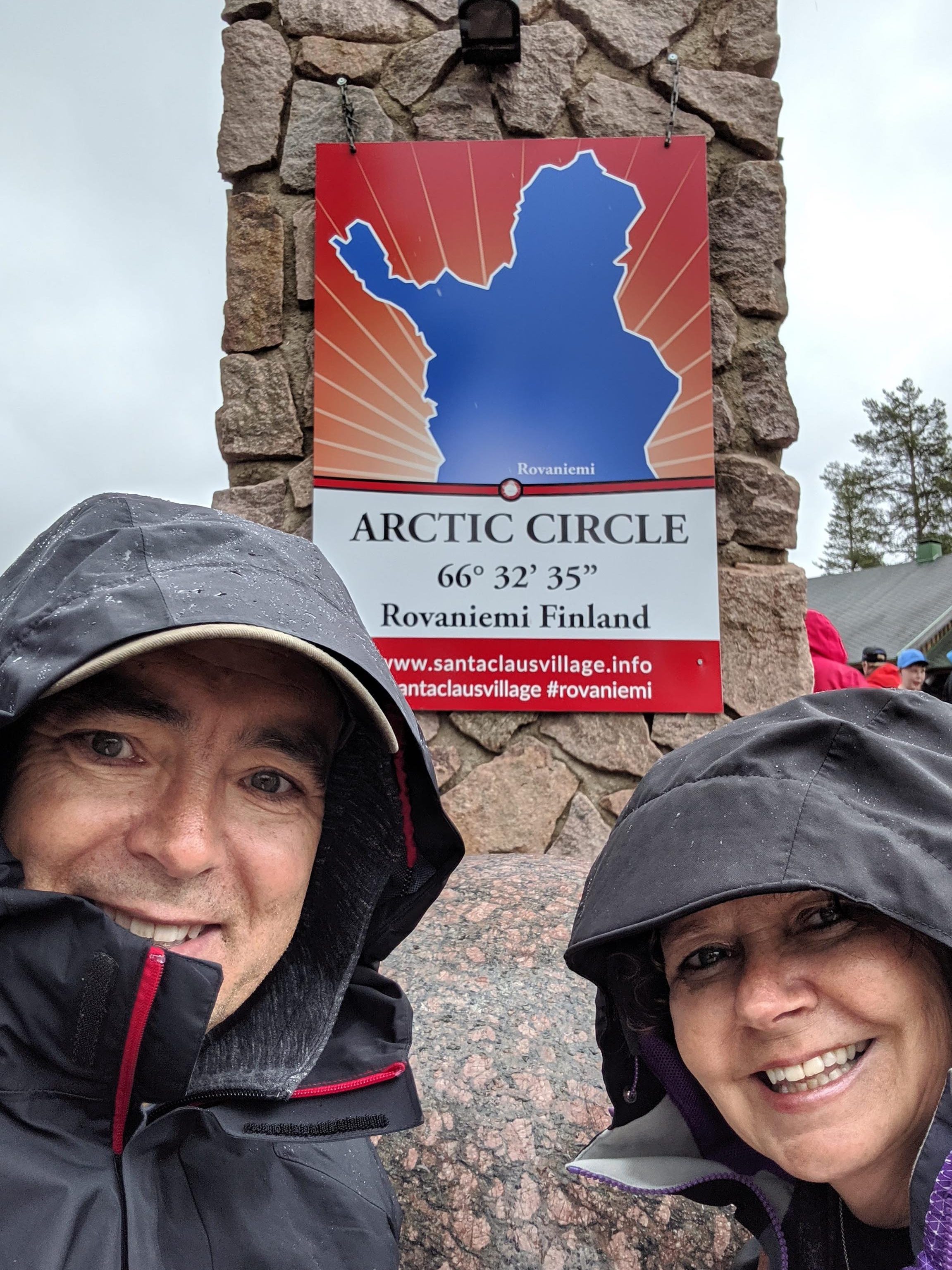 After Oulu our weather luck ran out and we endured some mega rains over the next few days as we made our way onwards and upwards to the Arctic Circle. Santa Claus village in Rovaneimi is where all the Arctic Circle tourist stuff happens. While we didn’t pay a visit to the jolly old guy dressed in red, we did join in the regular tourist fun. We mailed some postcards from the Santa’s post office which, according to the promotional blurb, is the busiest in the world. We took a variety of selfies straddling the Arctic Circle line. We also ooh’d and aah’d at about 50 Ferraris that were parked in the center of Santa Claus village. OK – that last one is not the typical tourist fun. There just happened to be a group of Ferrari enthusiasts who had toured in a convoy to the Arctic all the way from Italy. Was it a tourist trap? – Yes. Did we have fun while trapped? – Yes.